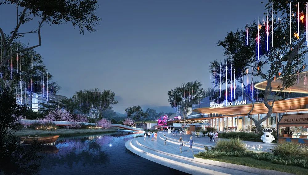 結(jié)合“雅樂匯”服務(wù)商業(yè)空間,打造夢幻的戶 外水幕劇場、休閑水岸、藝術(shù)燈光營造,展現(xiàn)出人文星河、商旅共榮、生機(jī)同棲的盛世畫卷,在這里感受雅安的風(fēng)物、人文意趣,感知雨潤雅安帶來的萬物豐澤、盛世民安。