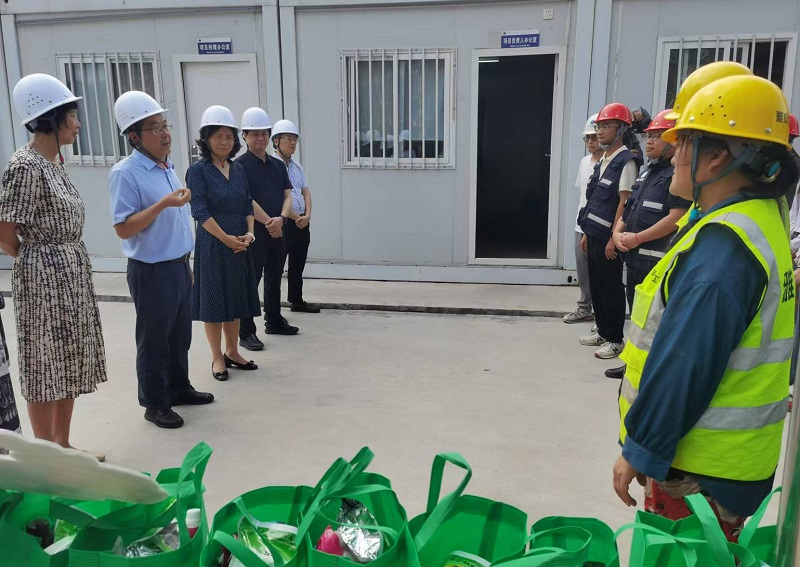 慰問組一行深入項(xiàng)目施工現(xiàn)場,詳細(xì)了解了項(xiàng)目的通風(fēng)降溫設(shè)施、防暑藥品配備、清涼飲品供應(yīng)、工人作息時(shí)間調(diào)整等關(guān)鍵防暑措施落實(shí)情況,并對施工現(xiàn)場的安全防護(hù)設(shè)施進(jìn)行了檢查。