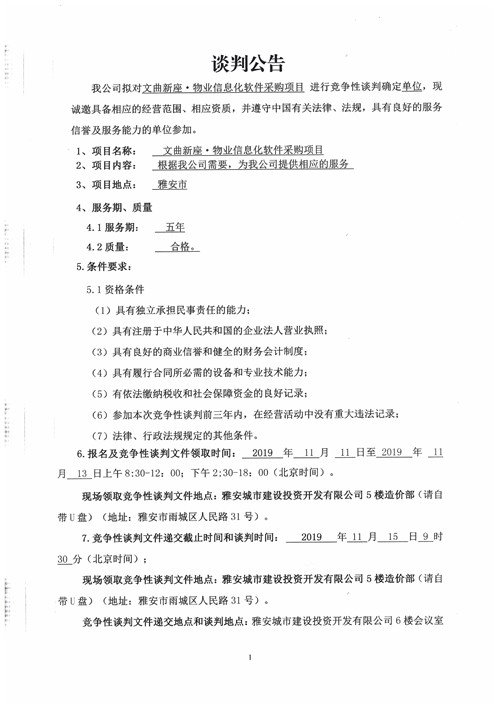 城投·文曲新座物業(yè)信息化軟件采購項目競爭性談判公告