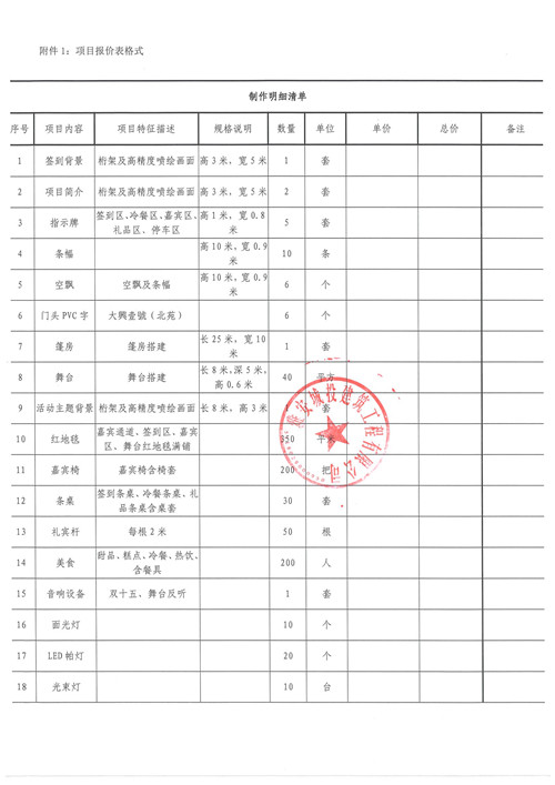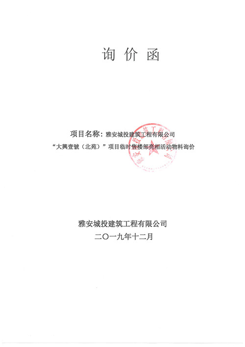 大興壹號(北苑)項目臨時售樓部亮相活動物料詢價函