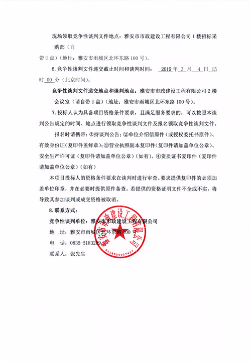 雅安市市政建設工程有限公司2019年度零星材料采購供應商競爭性談判公告
