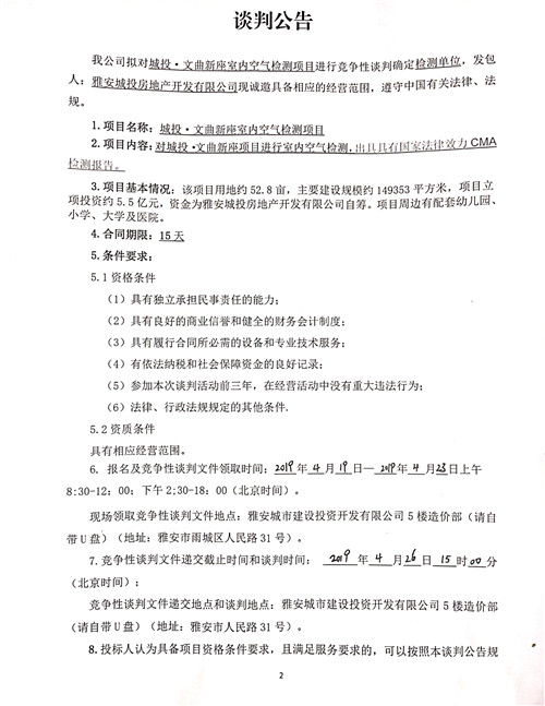 城投·文曲新座室內(nèi)空氣檢測項目競爭性談判公告