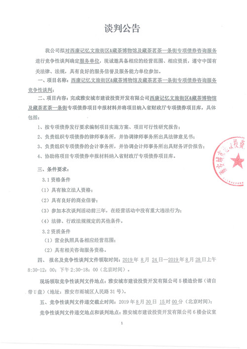 西康記憶文旅街區(qū)&藏茶博物館及藏茶茗茶一條街專項債券咨詢服務(wù)競爭性談判公告