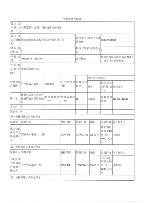 大興壹號(hào)(北苑)項(xiàng)目銷售代理招標(biāo)中標(biāo)候選人公示