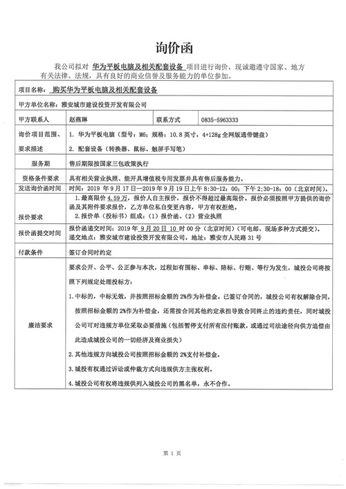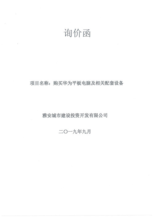 城投公司購(gòu)買華為平板電腦及相關(guān)配套設(shè)備詢價(jià)函
