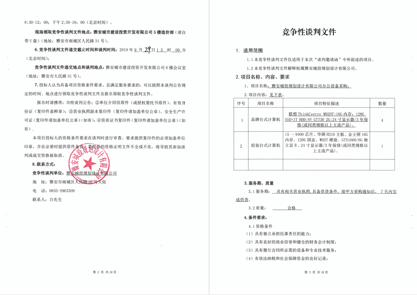 雅安城投規(guī)劃設(shè)計(jì)有限公司辦公設(shè)備采購(gòu)進(jìn)行競(jìng)爭(zhēng)性談判的公告