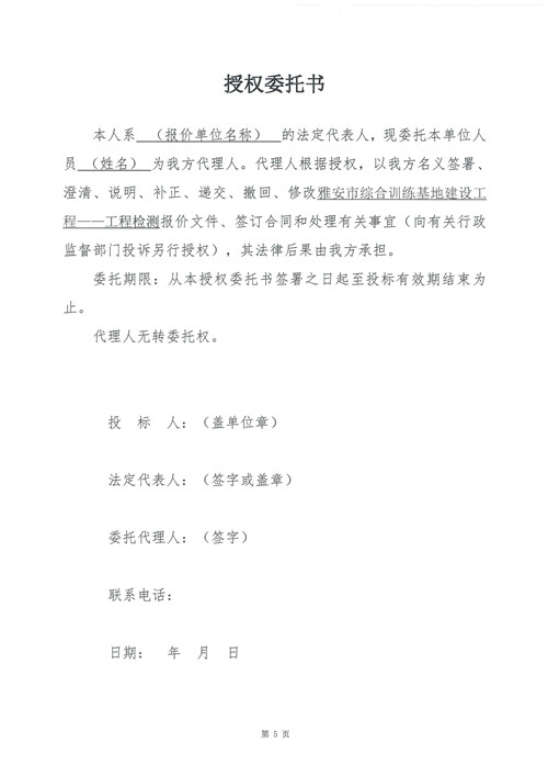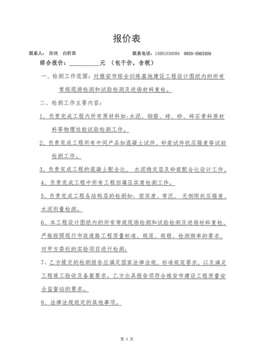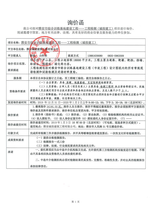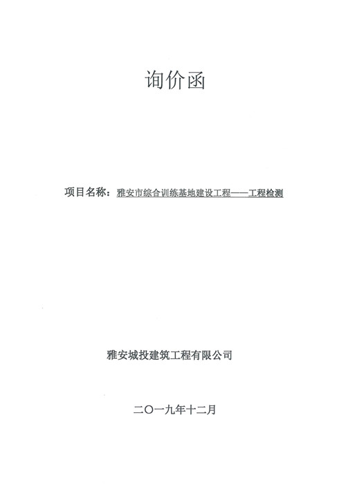 雅安市綜合訓(xùn)練基地建設(shè)工程——工程檢測詢價函