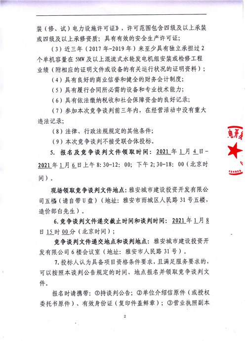 羅家灣電站2#水輪發(fā)電機(jī)組A級(jí)檢修工程談判公告