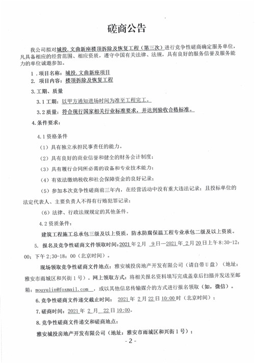 城投.文曲新座樓頂拆除及恢復工程(第三次)競爭性磋商公告