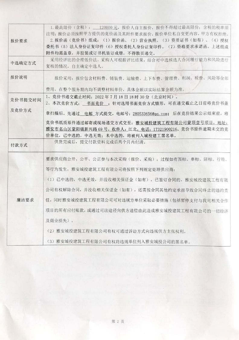 蒙頂壹號項目GRC線條采購競爭公告