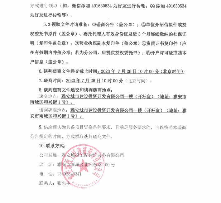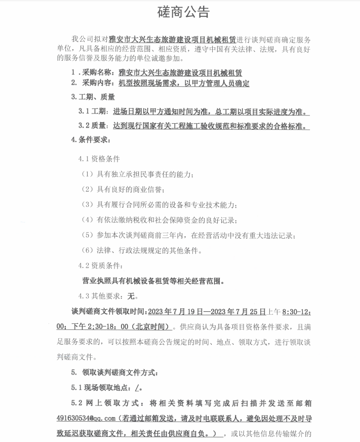 雅安市大興生態(tài)旅游建設(shè)項目機械租賃談判磋商公告