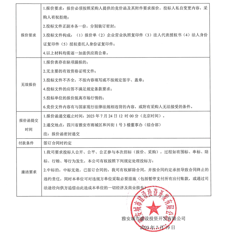 雅安城市建設投資開發(fā)有限公司辦公用品采購項目競價公告