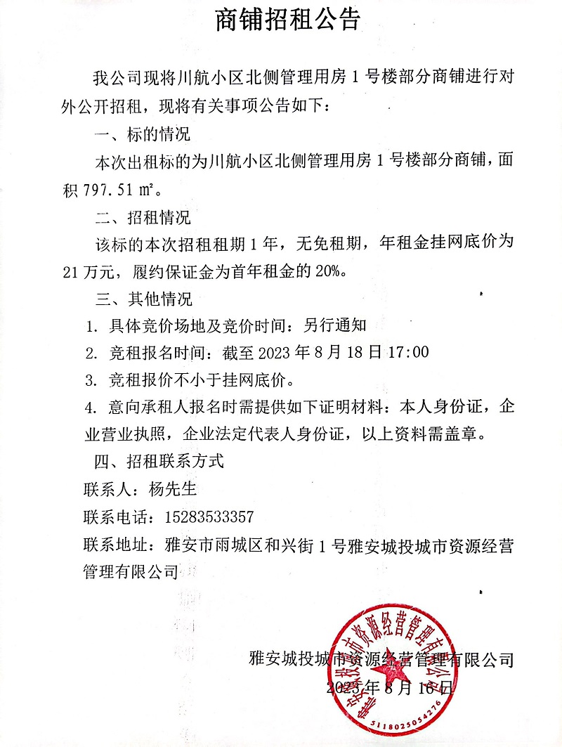 川航小區(qū)北側管理用房1號樓部分商鋪招租公告