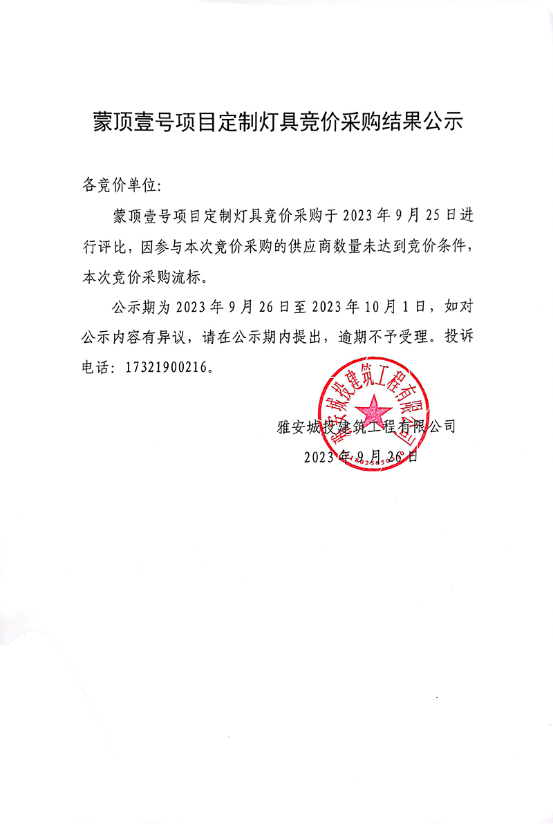 蒙頂壹號項目定制燈具競價采購結(jié)果公示