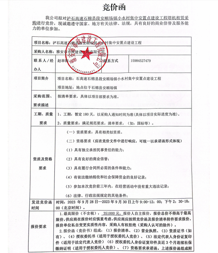 瀘石高速石棉縣段安順場(chǎng)鎮(zhèn)小水村集中安置點(diǎn)建設(shè)工程塔機(jī)租賃采購(gòu)競(jìng)價(jià)公告