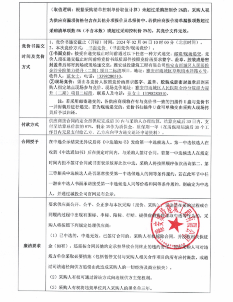 雅安市雨城區(qū)人民醫(yī)院金沙分院能力提升(二期)項(xiàng)目二標(biāo)段不銹鋼玻璃采購(gòu)競(jìng)價(jià)公告