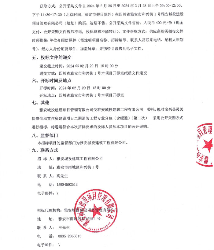 寶興縣靈關(guān)保障性租賃住房建設(shè)項(xiàng)目二期消防工程專業(yè)分包(含暖通)(第二次)公告