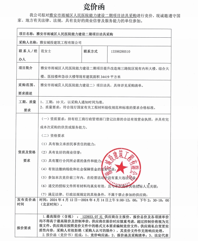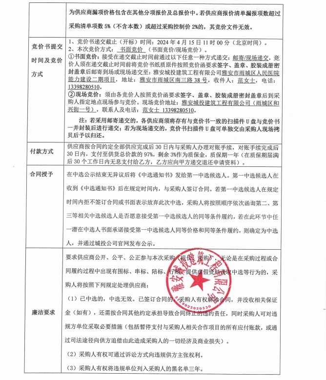 雅安市雨城區(qū)人民醫(yī)院能力建設(shè)二期項(xiàng)目潔具采購(gòu)競(jìng)價(jià)公告