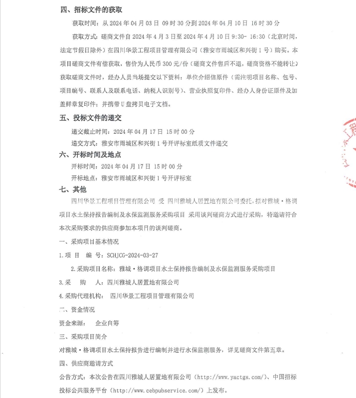 雅城·格調(diào)項(xiàng)目水土保持報(bào)告編制及水保監(jiān)測(cè)服務(wù)采購項(xiàng)目競爭性磋商公告