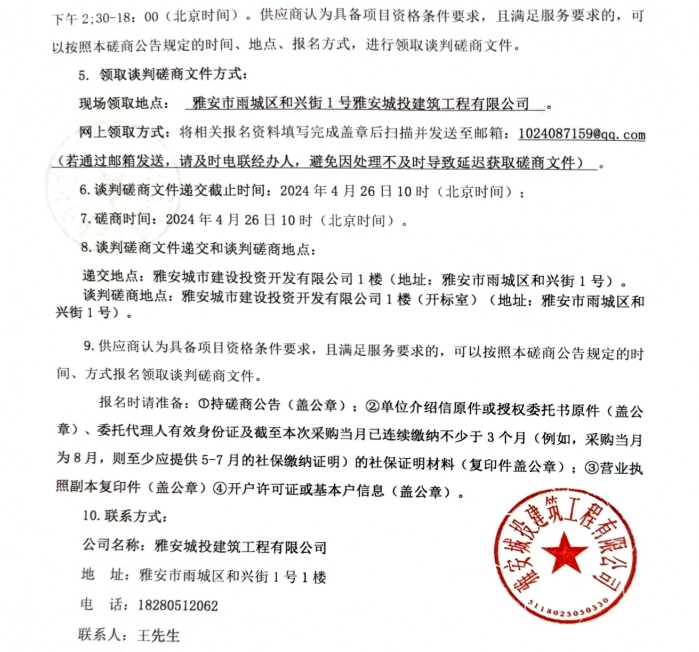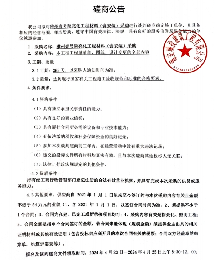 雅州壹號(hào)院亮化工程材料(含安裝)采購磋商公告