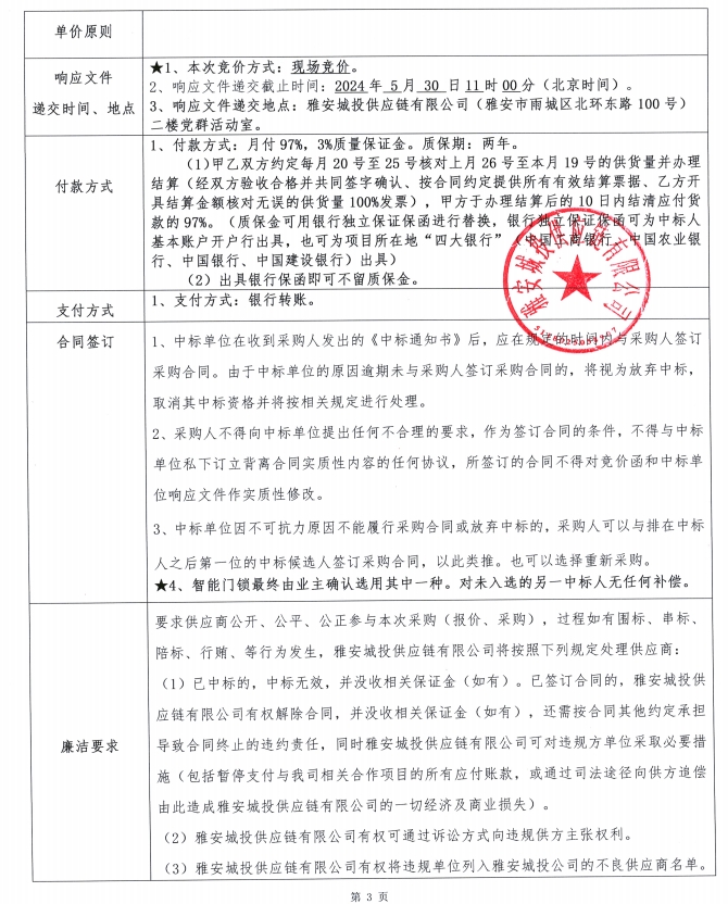 附件1:競(jìng)價(jià)函--雅州壹號(hào)院智能門鎖采購(gòu)