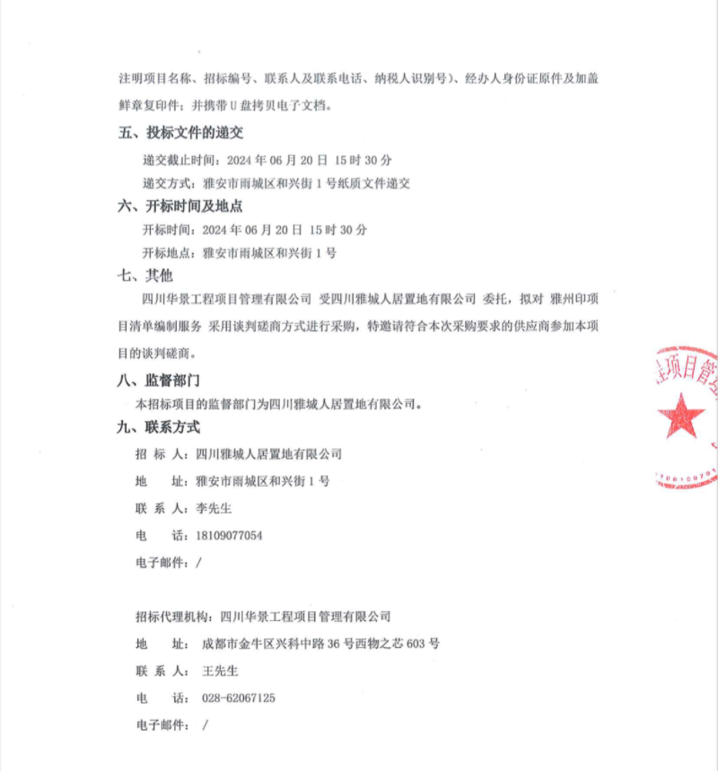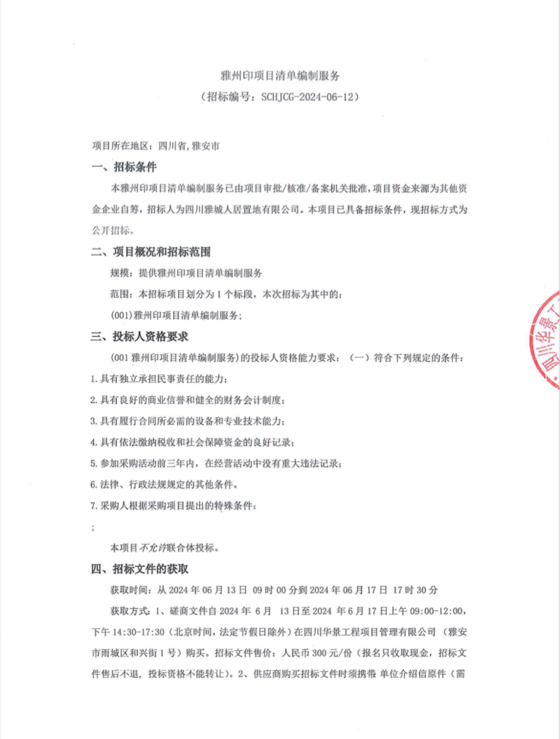 雅州印項目清單編制服務(wù)公告