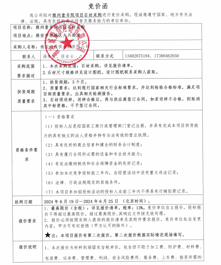 雅州壹號(hào)院項(xiàng)目石材采購(gòu)競(jìng)價(jià)公告