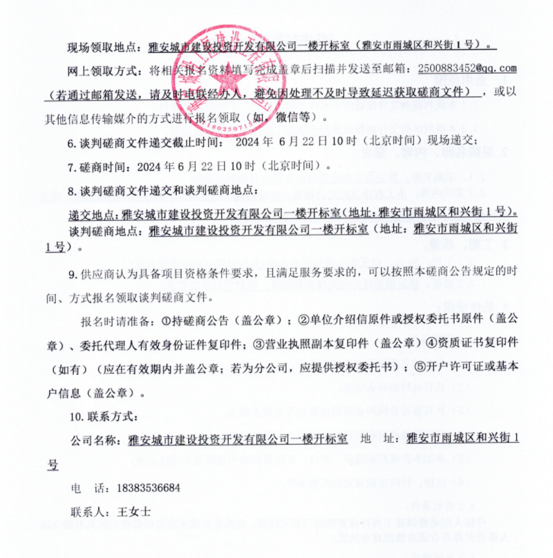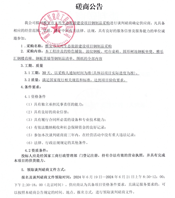 雅安市大興生態(tài)旅游建設(shè)項(xiàng)目鋼制品采購談判磋商公告