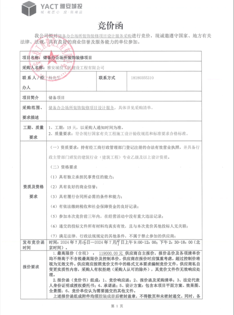 儲備辦公場所裝飾裝修項(xiàng)目競價(jià)公告