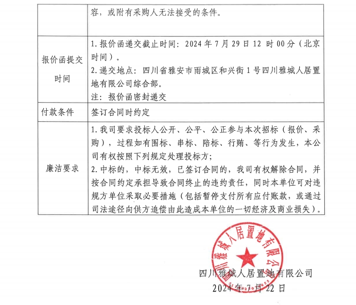 四川雅城人居置地有限公商務(wù)車采購項目競價公告