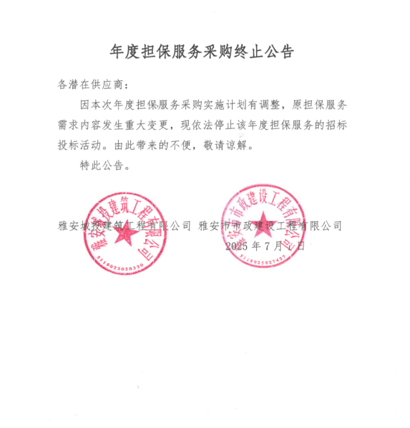 年度擔(dān)保服務(wù)采購(gòu)終止公告