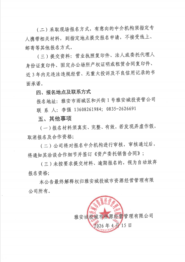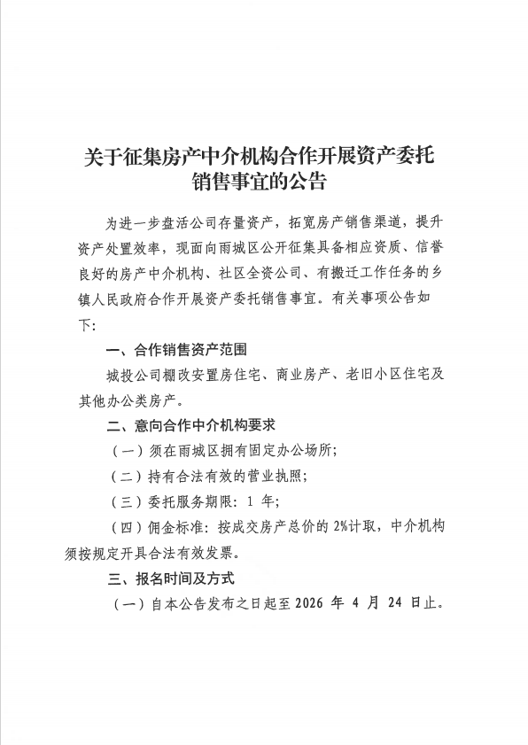 關于征集房產中介機構合作開展資產委托銷售事宜的公告
