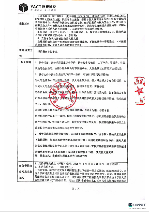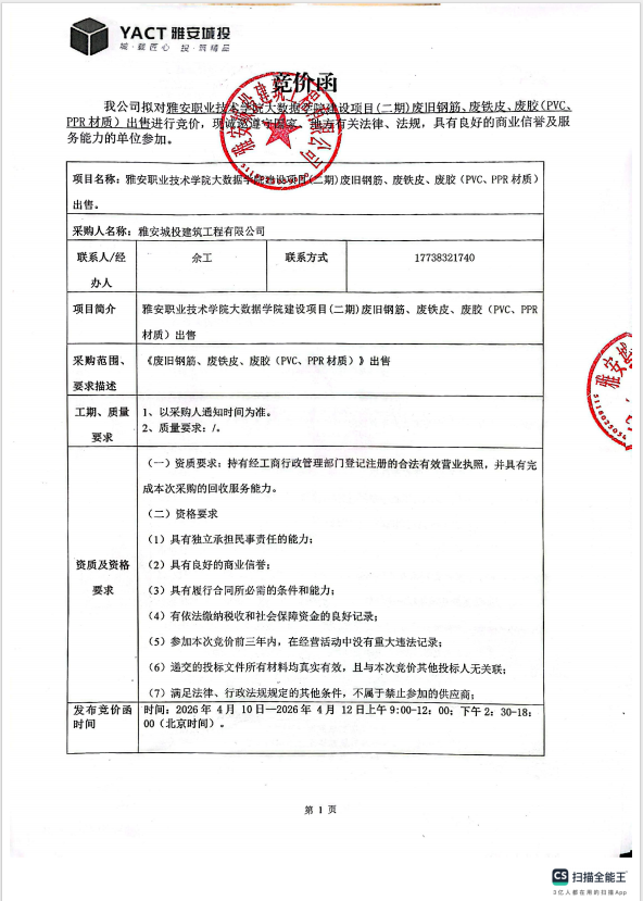 雅安職業(yè)技術(shù)學(xué)院大數(shù)據(jù)學(xué)院建設(shè)項目(二期)廢舊鋼筋、廢鐵皮、廢膠(PVC、PPR材質(zhì))出售