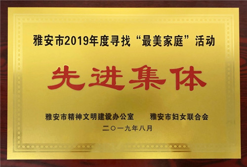 9月27日,城投公司雅安市2019年尋找“最美家庭”活動先進(jìn)集體稱號。
